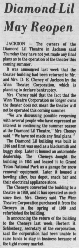 Jackson Hole WBA charter #54012 per the 1999 Women's State Tournament Booklet. D Edward Cheney was listed as having a radio and electric equipment business in Jackson and was the owner/manager of the lanes per the 1955 Rocky Mountain State Directory. The Jackson Hole Playhouse is at this location today in 2025. |